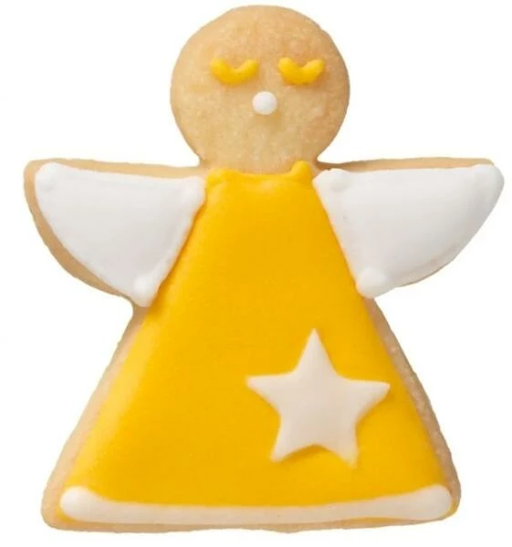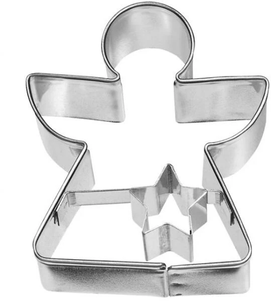Weihnachtlicher Plätzchenausstecher in Form eines geometrischen Engels aus Edelstahl, 6 cm.