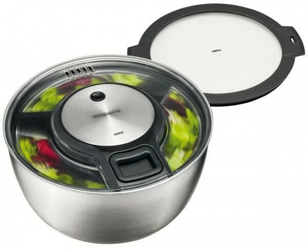 GEFU Salatschleuder SPEEDWING mit Frischhaltedeckel. Formschöne Salatschleuder mit integrierter Schüssel zum stilvollen Servieren der Salatspeisen und praktischem Frischhhaltedeckel zum sicheren Transportieren.