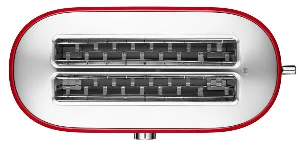 KitchenAid Langschlitztoaster mit manueller Bedienung in empire rot. Mit langen, extra breiten Schlitzen, 7 Bräunungsstufen, Auftau-, Warmhalte- und Bagel-Funktion. Aus robustem und stabilem Metallgehäuse.