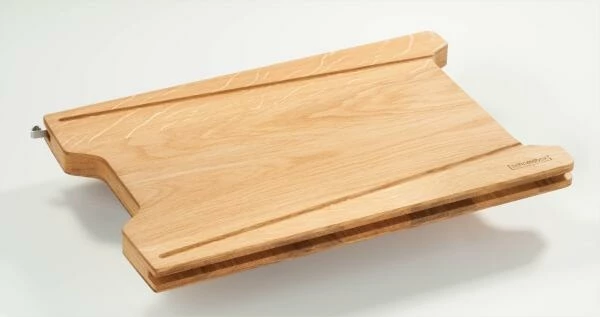 Dreilagig gearbeitetes Eichenbrett inklusive Edelstahlfeder zum Einrasten und kompatibel zu allen Schneidboxen. Ein Verzug des Brettes ist bei normalem Gebrauch ausgeschlossen. Die Einrastfeder im Schneidebrett ist aus Feder-Edelstahl und zweifach verschraubt.