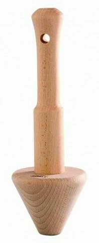 Konischer Stößel zum Passieren von Brühen, Suppen und Saucen durch Spitzsiebe oder konische Küchensiebe.