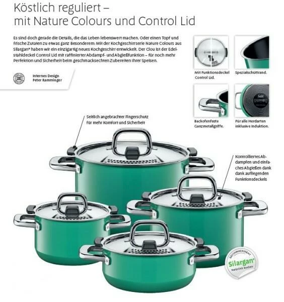 Silit Kochtopf-Set Nature Black, 4-teilig. Der Clou der Töpfe ist der Edelstahldeckel Control Lid mit raffinierter Abdampf- und Abgießfunktion – für noch mehr Perfektion und Sicherheit beim geschmacksechten Zubereiten Ihrer Speisen.