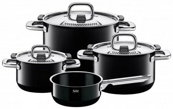Silit Kochtopf-Set Nature Black, 4-teilig. Der Clou der Töpfe ist der Edelstahldeckel Control Lid mit raffinierter Abdampf- und Abgießfunktion – für noch mehr Perfektion und Sicherheit beim geschmacksechten Zubereiten Ihrer Speisen.