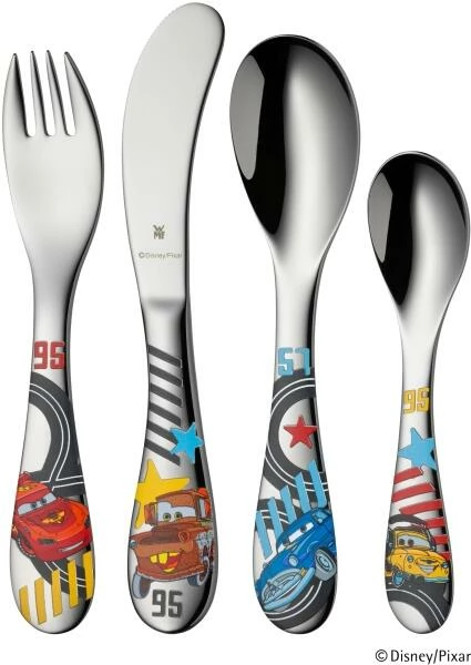 Cars die animierten Autos mit Charakter Stimme und Geschichte geben diesem Kinder-Set einen unverwechselbaren Look. Auf dem WMF Cars Kinder-Besteckteile aus Cromargan: Edelstahl rostfrei 18/10 schmücken Lightning McQueen und seine Freunde die Stielenden. Passend dazu gibt es ein zweiteiliges Kinderporzellan bestehend aus Teller und Schüssel. Vor allem Jungs ab drei Jahren finden dieses Kinder-Set echt abgefahren.