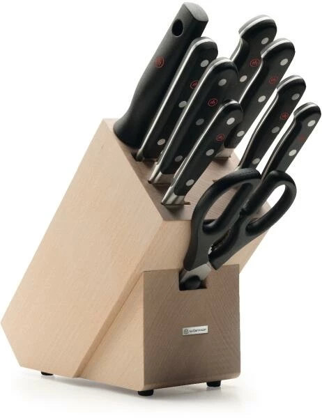 Messerblock in Buche natur aus der Serie Classic mit 9 Teilen. Alles was der ambitionierte Hobby- und Profikoch begehrt. Die 9-teilige Grundausstattung mit den Klassikern von