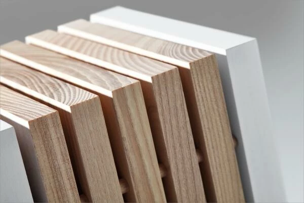 - Material Messerblock: Material Messerblock: Innenteil aus geöltem Eichenholz, Korpus aus weiß lackiertem Buchenholz