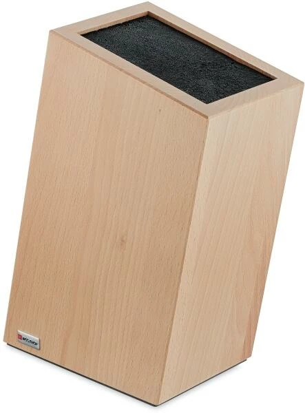 Dieser Messerblock kann variabel mit bis zu 10 Messern bestückt werden. Der Bürsteneinsatz ist aus feinen Kunststoffborsten und kann zur Reinigung entnommen werden, der Korpus ist aus hochwertigem Eschenholz. Außerdem verfügt der Messerblock über rutschhemmende Gumminoppen an der Unterseite.
