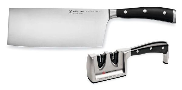 Wüsthof Messersatz Classic Ikon, 2-teilig, bestehend aus Chinesischem Kochmesser und Messerschärfer. Der ideale Einstieg für alle Hobbyköche.