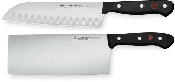 Wüsthof Messersatz Gourmet, 2er-Set. Das Messer-Set besteht aus einem Santokumesser und einem Chinesischen Kochmesser.