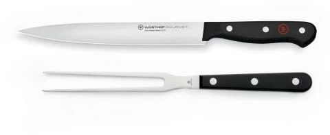 Tranchierbesteck Gourmet. Das Messer-Set besteht aus einem Aufschnittmesser und einer Küchengabel.