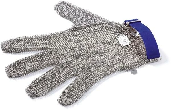 Schwerer Kettenhandschuh zum Schutz vor Schnitt- und Stichverletzungen beim Zerteilen von Fleisch und beim Öffnen von Austern. Professionelle Qualität. Verfügbar in den Größen XS, S, M. L und XL.