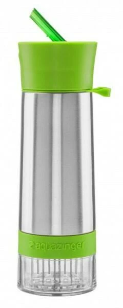 Zing Anything Aqua Zinger aromatisiert Wasser mit natürlichen Aromen. Am Boden der Edelstahl-Trinkflasche befindet sich ein Füllbecher mit einem Zerkleinerer. Befüllen Sie diese Schale mit Früchten, Gemüse oder Kräutern. Beim Verschließen werden die