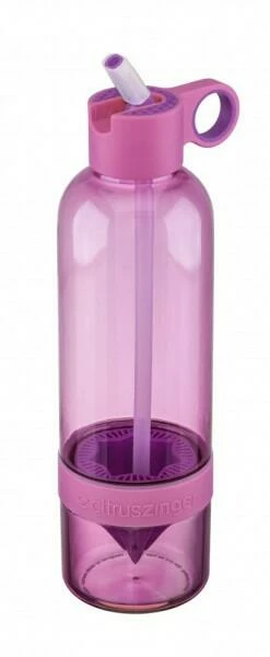 Zing Anything Citrus Zinger Sport, pink. Trinkflasche mit integrierter Zitruspresse und Trinkhalm. Perfekt für den Outdoor-Sportler oder im Fitnessstudio.