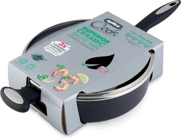 Mit der Bratpfanne von Zyliss der Linie ’Superior Ceramic’ kochen Sie nicht nur gesünder sondern auch umweltfreundlicher, denn sie ist frei von PTFE, Blei, Cadmium und außerdem zu 100% frei von Toxinen. Mit der XERA-DUR2 Keramik-Antihaftbeschichtung bietet sie überdies eine Keramikpfannen-Antihaftleistung, die dreimal länger hält. Geben Sie die Pfanne direkt vom Herd in den Ofen bei bis zu 180°C und nach der Benutzung bedenkenlos in die Spülmaschine. Sie ist leicht zu reinigen und zu pflegen.